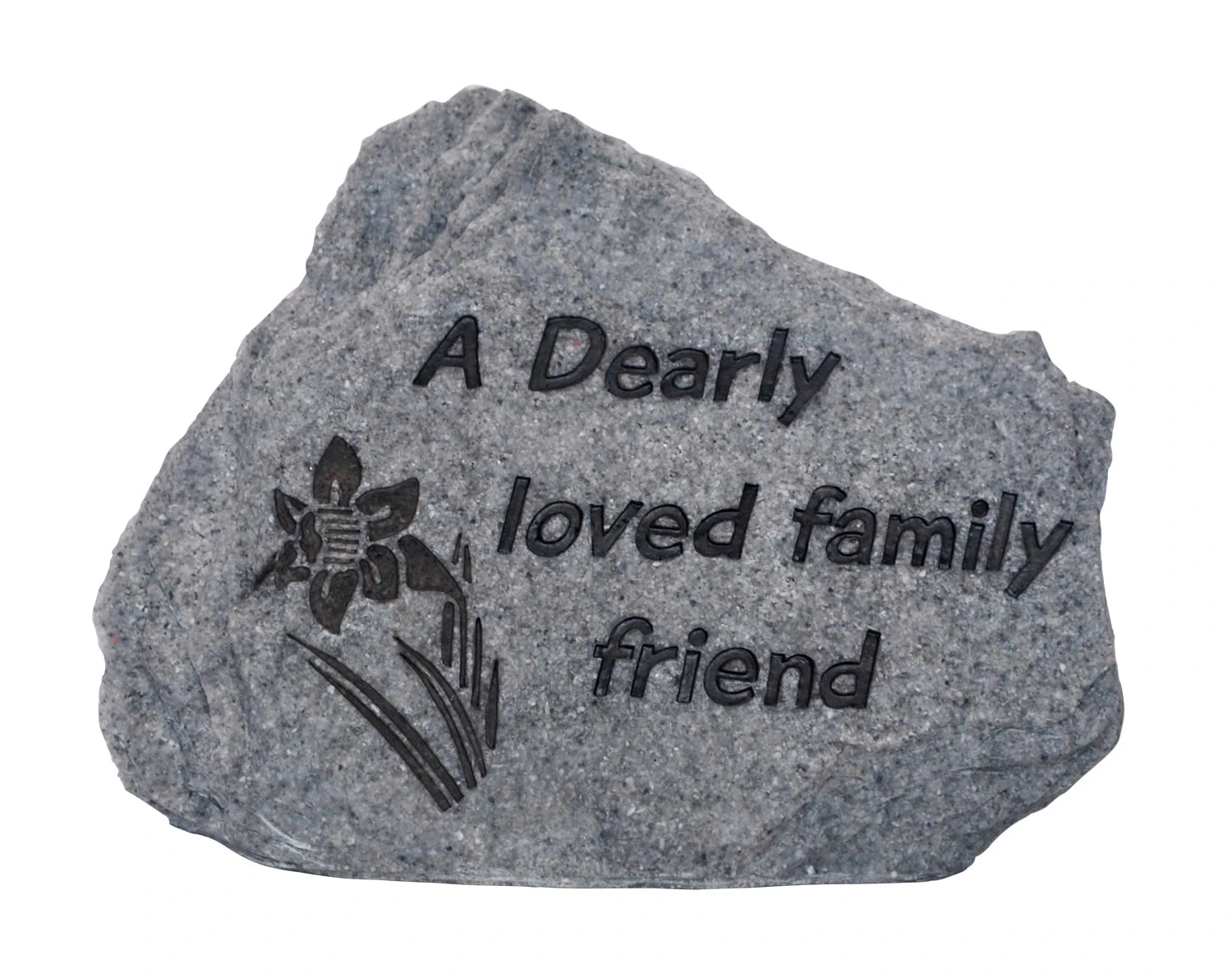 The Dearly Loved Family Friend plaque is made from UV stabilized and frost resistant resin, this makes it ideal for use in and outdoors.