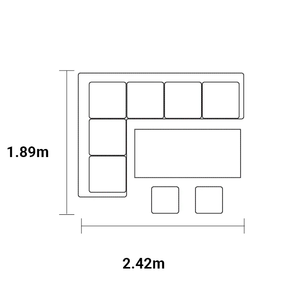 Corner seating unit: Height 89 x Width 242 x Depth 189cm