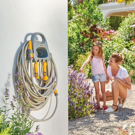 Wall mounted hanger and storage unit for 30m of 12.5mm hose.