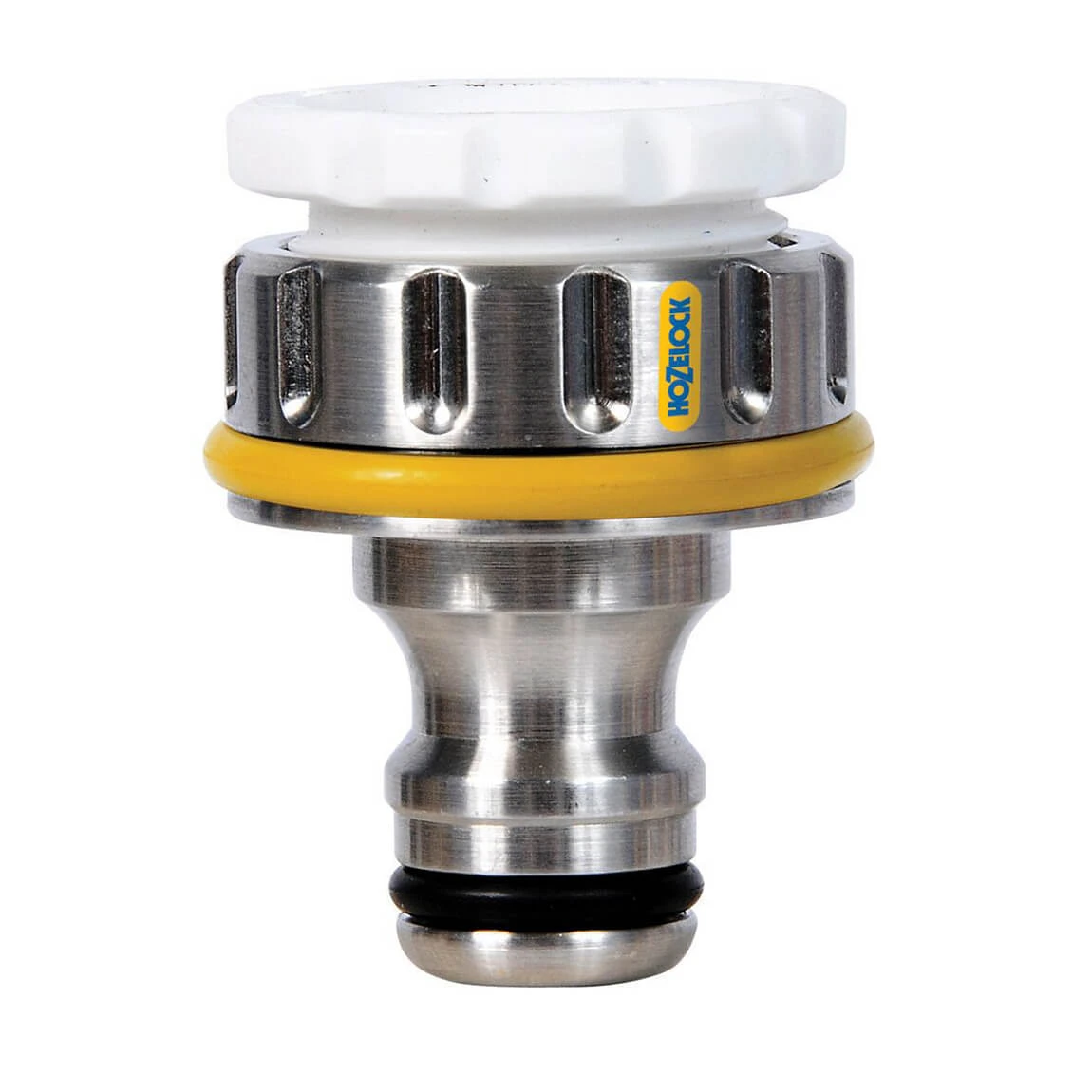 The connector securely attaches to the outdoor tap, and converts it to the Hozelock quick connect system.
