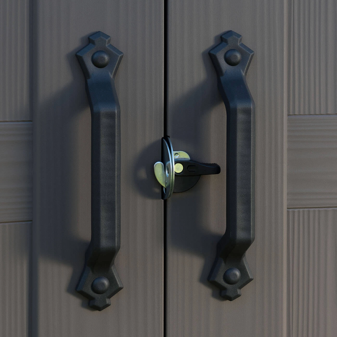The outdoor Keter factor 8 x 8 garden shed comes with spacious interior and features two shelves to provide and extended storage option. The window, skylight and the built-in ventilation helps to provide plenty of natural lighting.