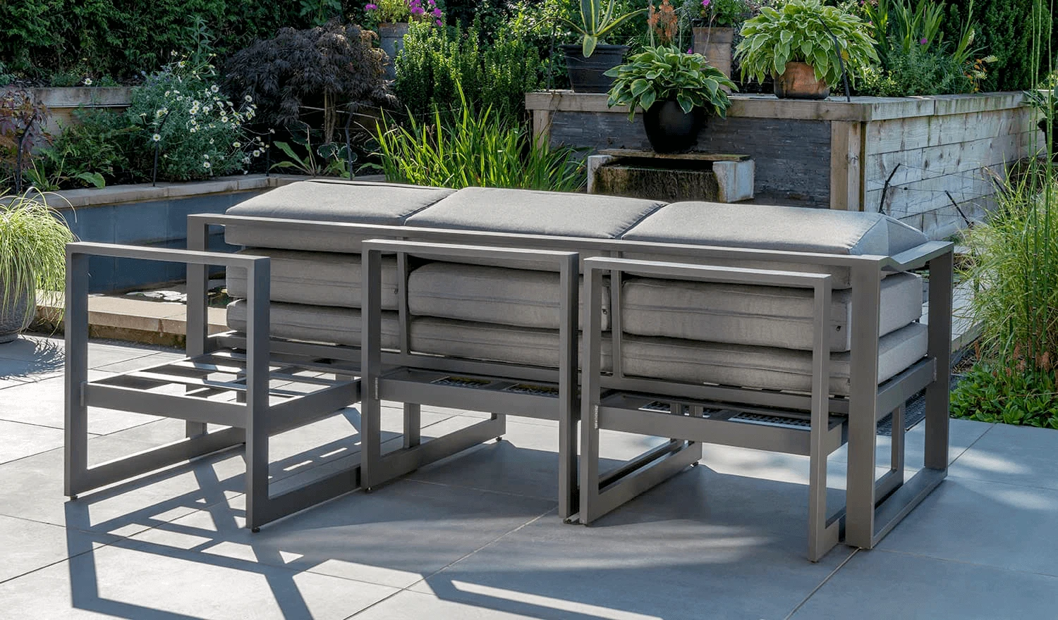 This stylish corner sofa set is perfect for the modern garden. Presented in contemporary grey, the Kettler Menos Versa Corner Sofa Set is spacious enough to seat around 6 guests.