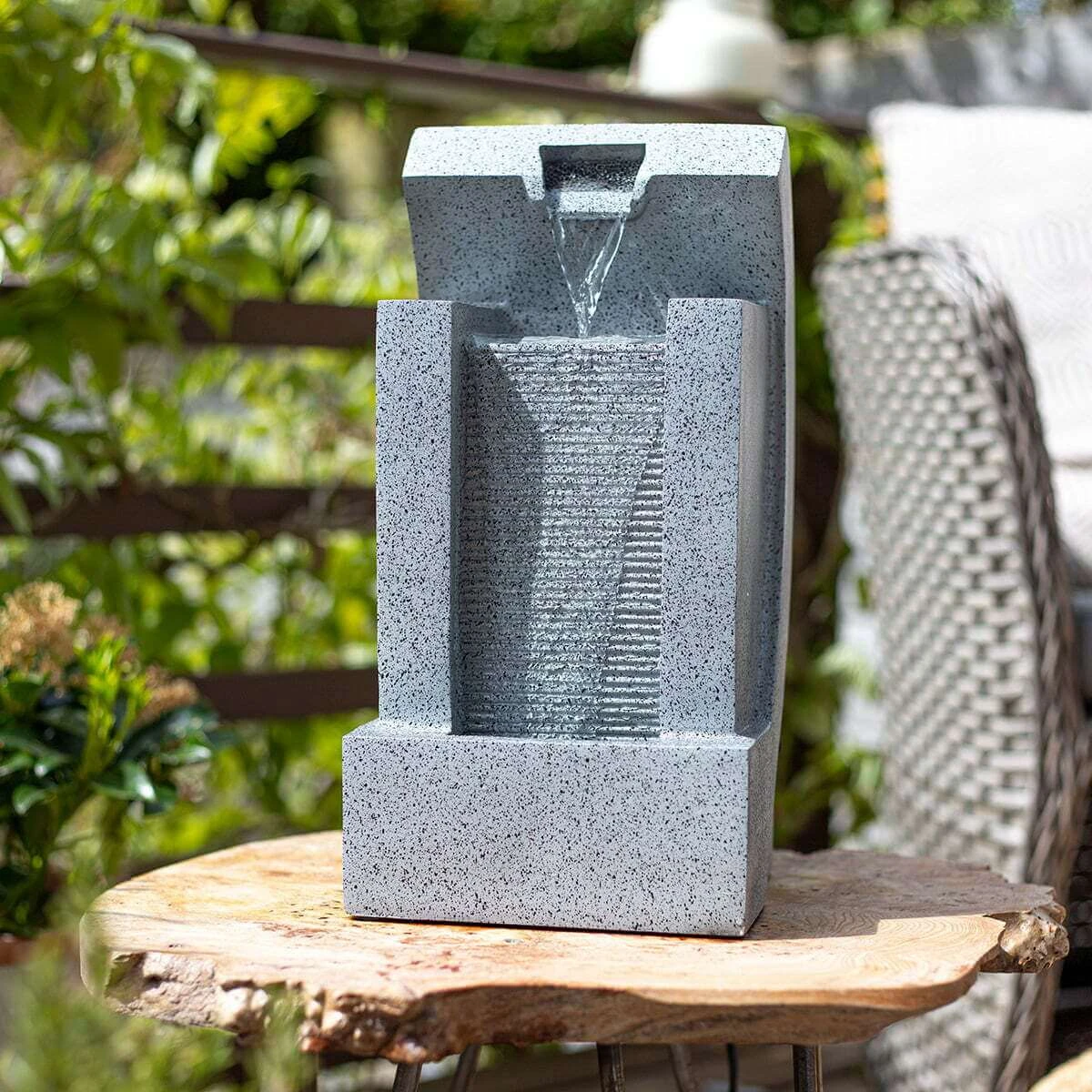 - Self-contained fountain with recirculating pump included