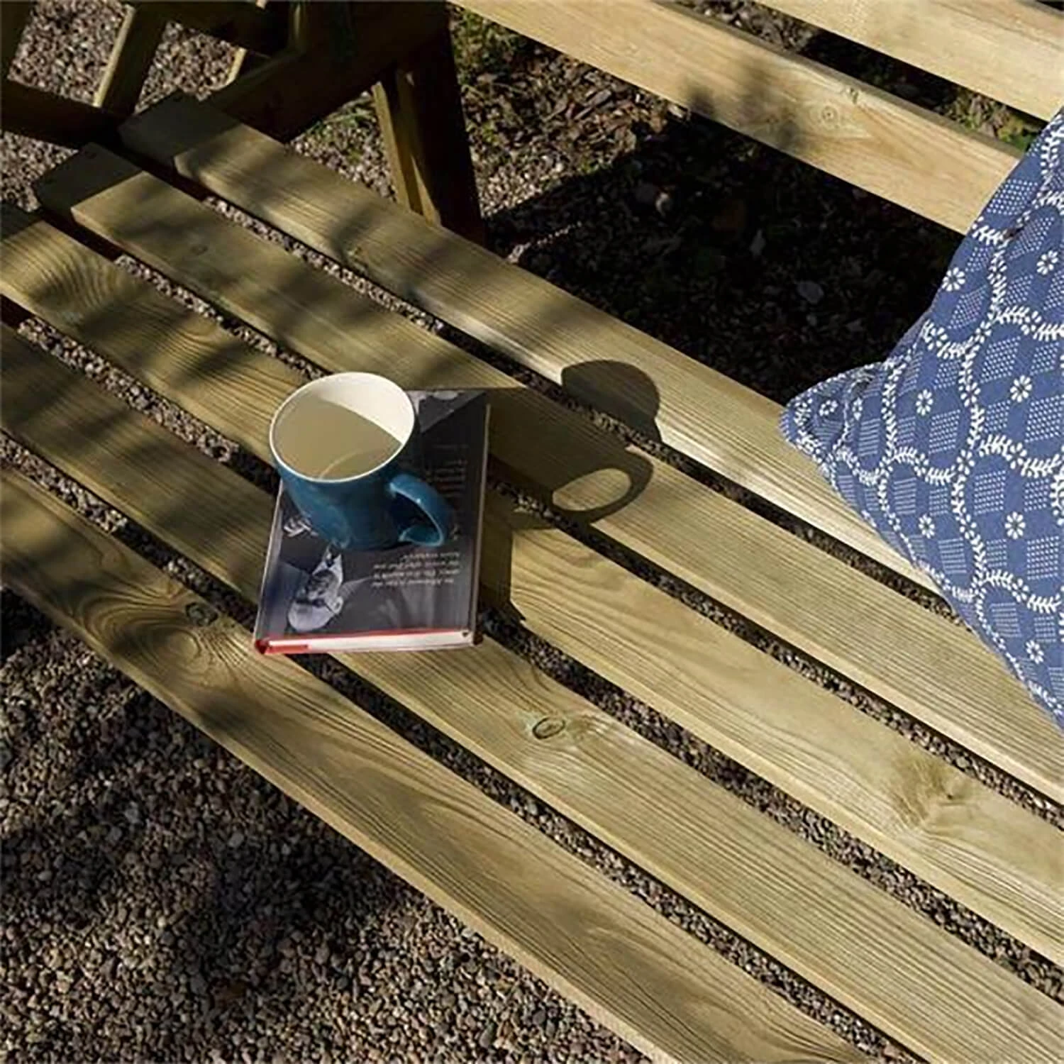 Create a cosy corner to relax in your garden with the Rowlinson Keswick Arbour. This attractive wooden arbour can comfortably seat two people and has a curved back panel, lattice sides and an open slatted roof. It comes in a natural, untreated wood finish, but can be painted or stained as desired, and has been pressure treated against rot.