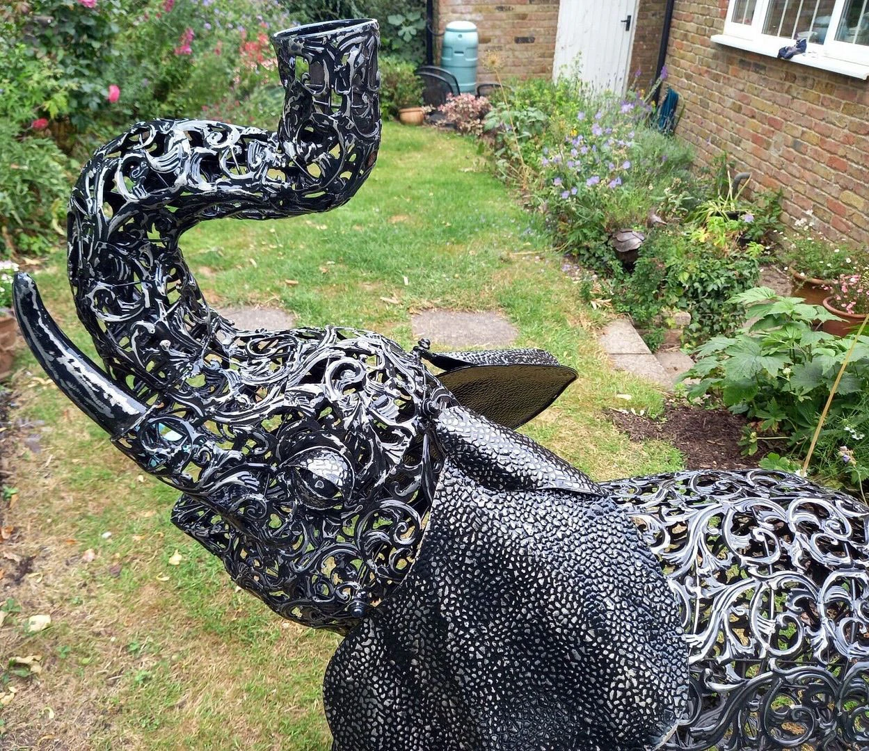 This amazing Asian Elephant sculpture in swirling patterned filigree metalwork looks incredible in the light – the detailing especially around the face is beautiful.